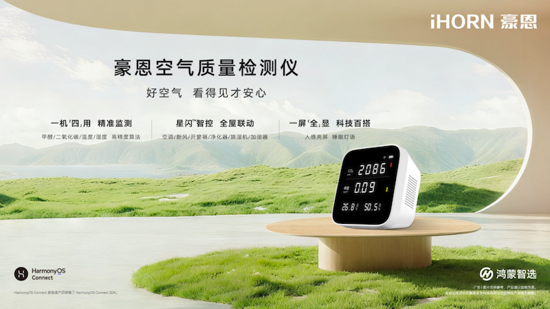 This collaboration enables iHORN air quality monitors to deeply integrate into the HarmonyOS Smart Connect ecosystem. Users can view real-time air quality data and receive anomaly alerts via the Smart Life app, while enabling scene-based interactions with air purifiers, air conditioners, and fresh air systems to establish a closed-loop “detect-alert-improve” air management system.